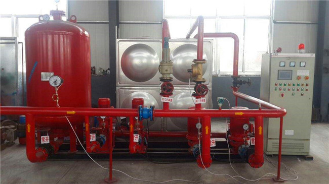 消防給水設備包括消火栓滅火系統、自動噴水滅火系統、水幕系統、雨淋系統等,主要由消防主泵、消防備用泵、穩壓泵組、氣壓罐、壓力傳感器、控制柜等組成。平時由穩壓泵組將管網壓力穩定在設定值,火災時消防主泵自動啟動滅火。